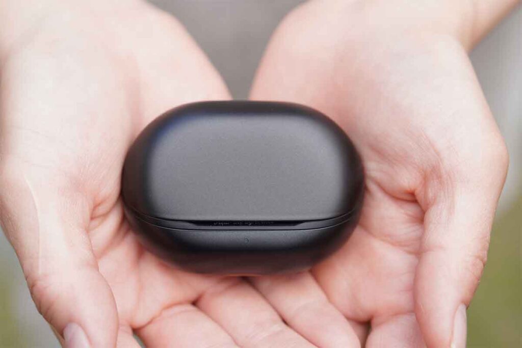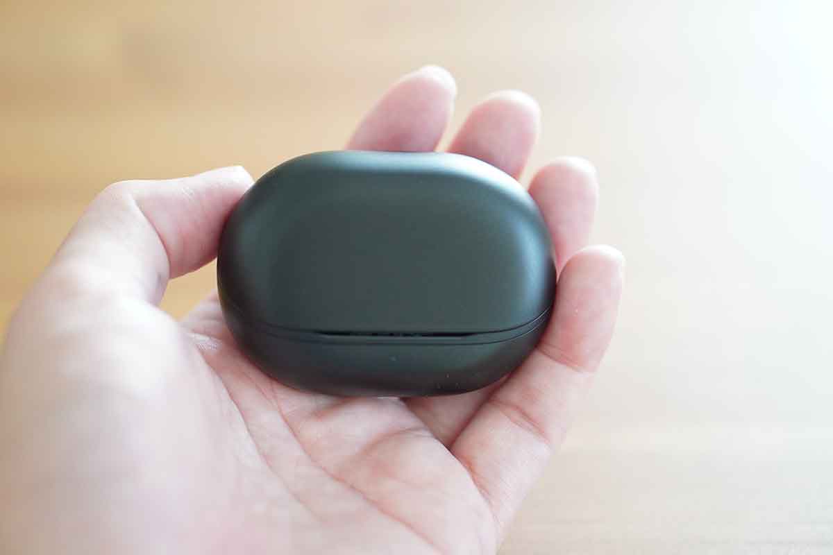 ケースはややしっかりしたサイズですが、フタの開閉がスムーズで片手でも扱いやすく、イヤホンの取り出し・収納もストレスなく行えます。