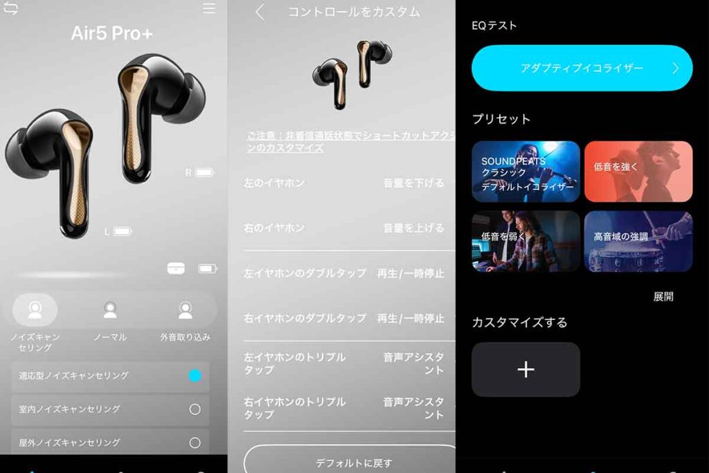 専用アプリ「PeatsAudio」を使えば、ANCの切り替えやイコライザー調整も直感的に操作できます。