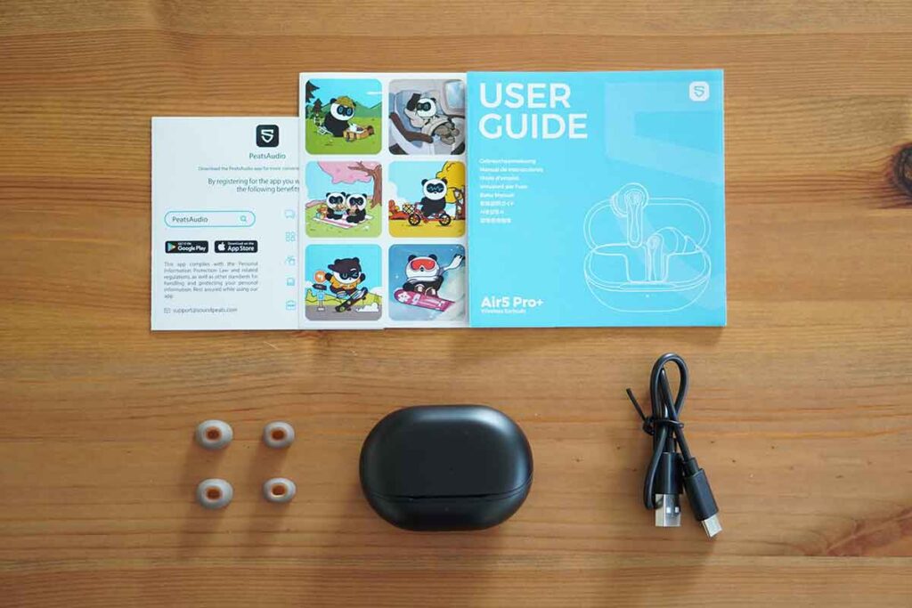 SOUNDPEATS Air5 Pro+の同梱物はとてもシンプルで、開封してすぐに使い始められる内容になっています。